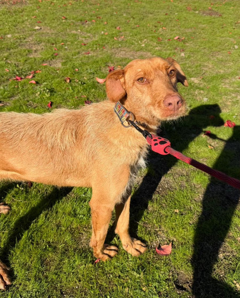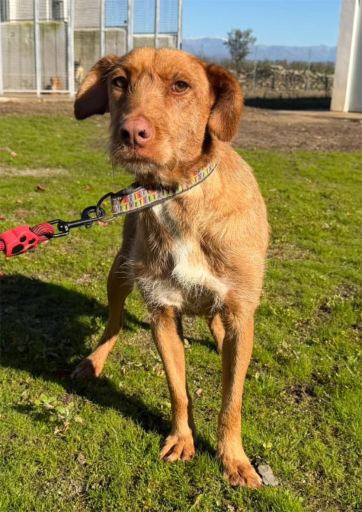 Saray, eine wunderschöne, leicht rauhaarige Podenca, die mit ihren Bernsteinaugen und ihrem fröhlichen Wesen jeden sofort um den Finger wickelt.